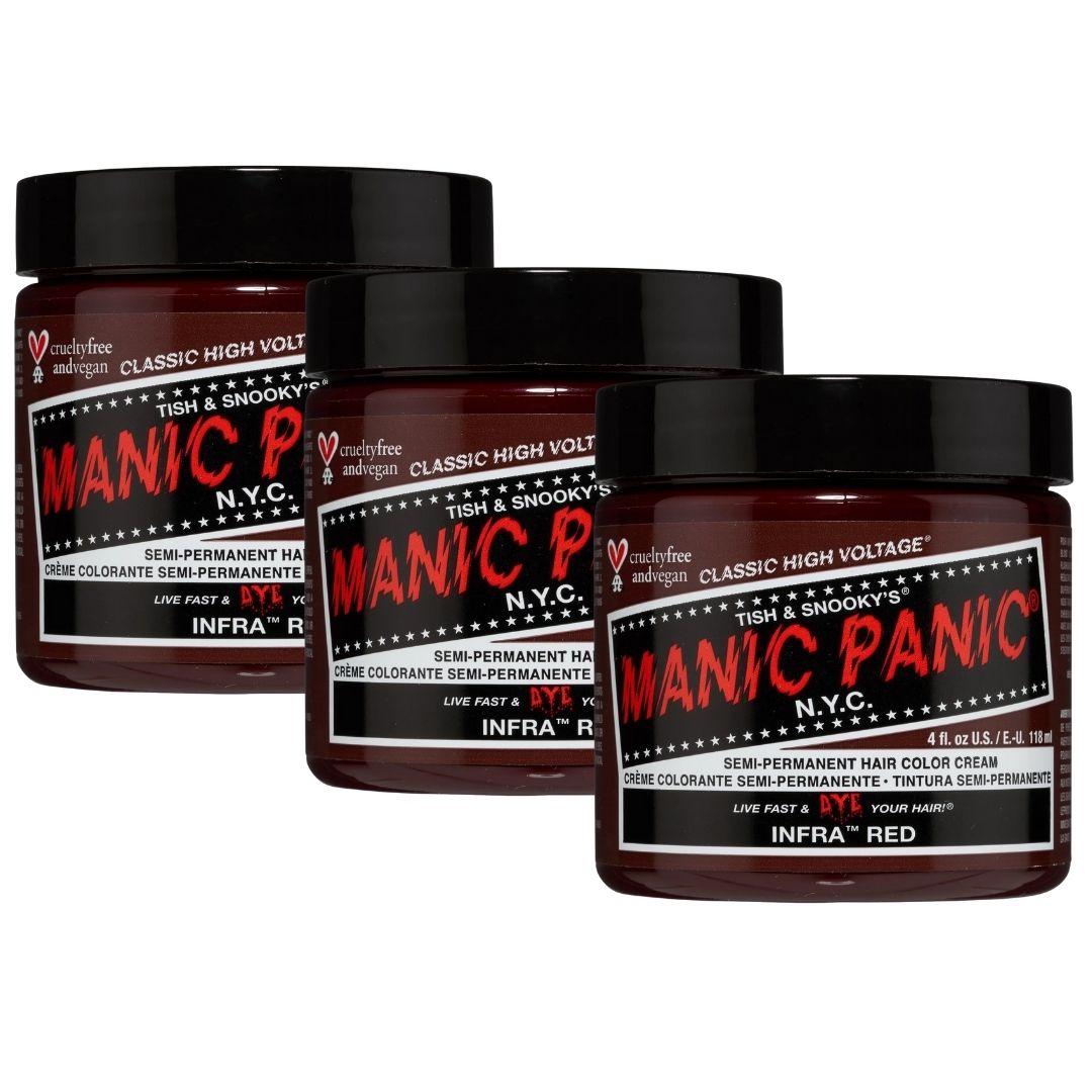 Set 3 vasetti di tinta capelli semi-permanente vegana Infra Red Classic High Voltage da 118 ml.