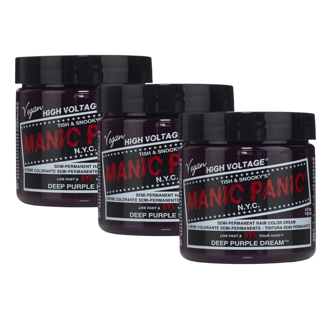 Set 3 vasetti di tinta capelli semi-permanente vegana Deep Purple Dream Classic High Voltage da 118 ml.
