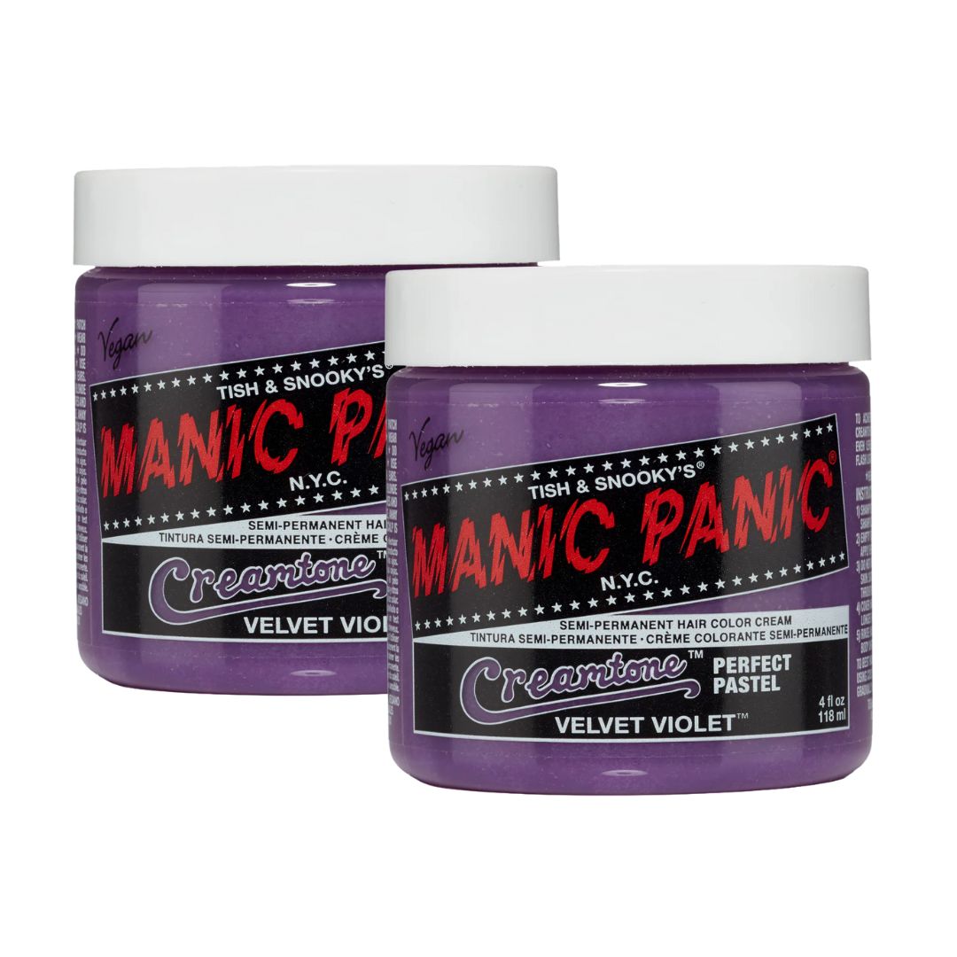 Prezzo di listino €35,00 Prezzo in offerta €31,50 Risparmia €3,50Set 2 vasetti di tinta capelli semi-permanente vegana Velvet Violet Creamtones® Perfect Pastel da 118 ml.